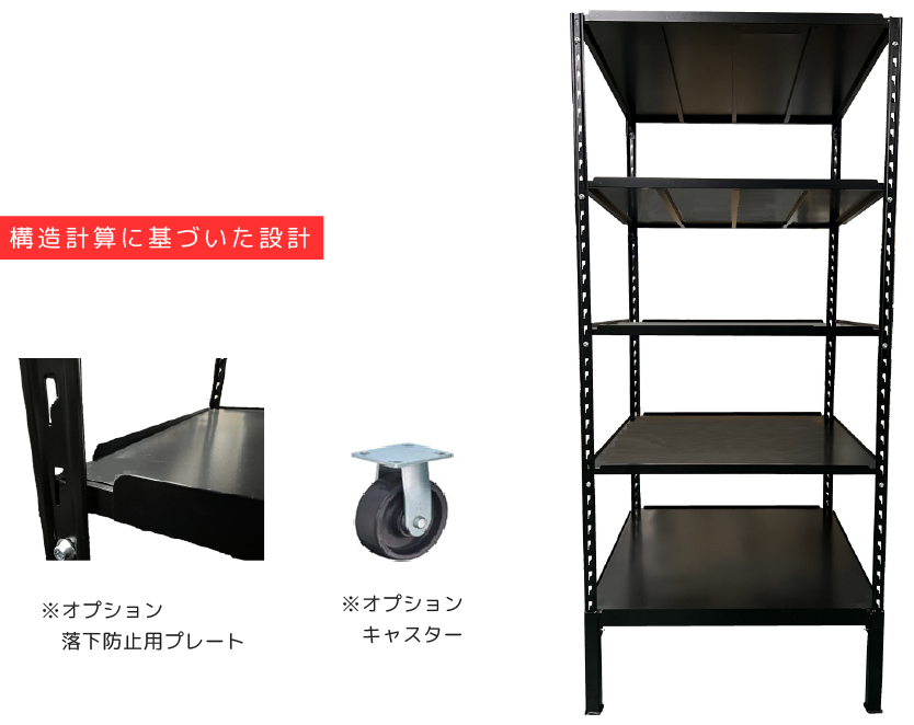 オプションで落下防止プレート、キャスターを設定できます。